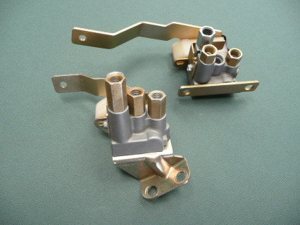 1957 BROUGHAM ONLY FUEL PUMP SAFETY CUT OUT SWITCH/AIRIDE COMPRESSOR OIL FEED LINE BRASS FITTINGS: If you cannot figure out how all this attaches you are not alone. Over the years I have seen a lot of cobbled up cars with all kinds of incorrect fittings. These are commonly missing parts. If you have this common problem you will need this combination of four different, some very odd, fittings that screw into the engine block. It is impossible to get it right without these parts, which you will not find at the local auto parts store! $50